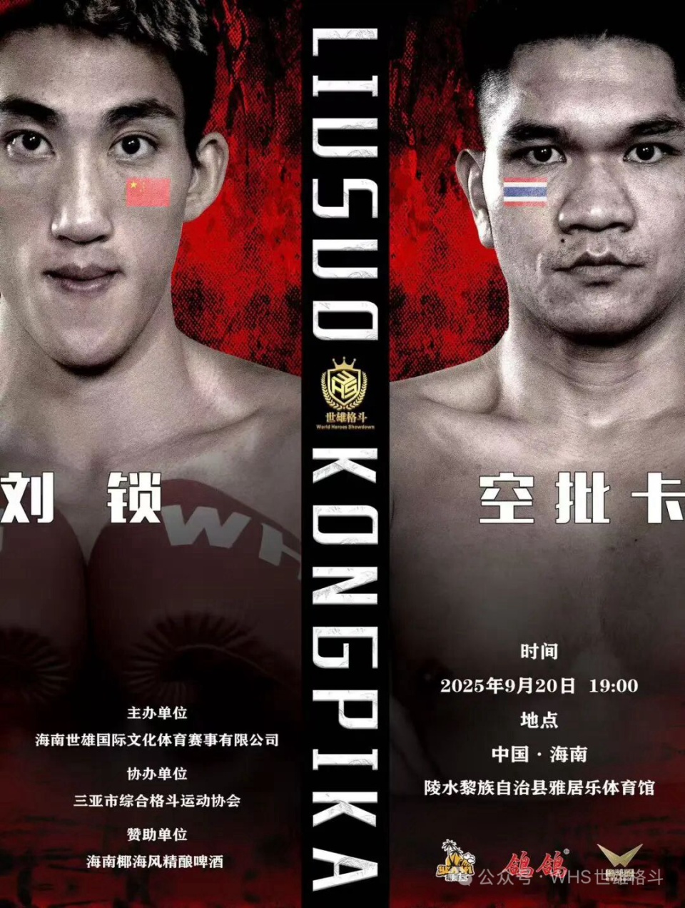 北京时间9月20日晚19点,《WHS世雄格斗职业联赛》第三轮上半区赛事将在海南陵水雅居乐体育馆震撼开幕。本轮焦点毫无疑问是77KG次中量级的积分榜首对决——全国自由搏击锦标赛冠军刘锁与伦披尼王者空批卡的“龙虎之争”,这场巅峰之战将决出次中量级无可争议的第一!